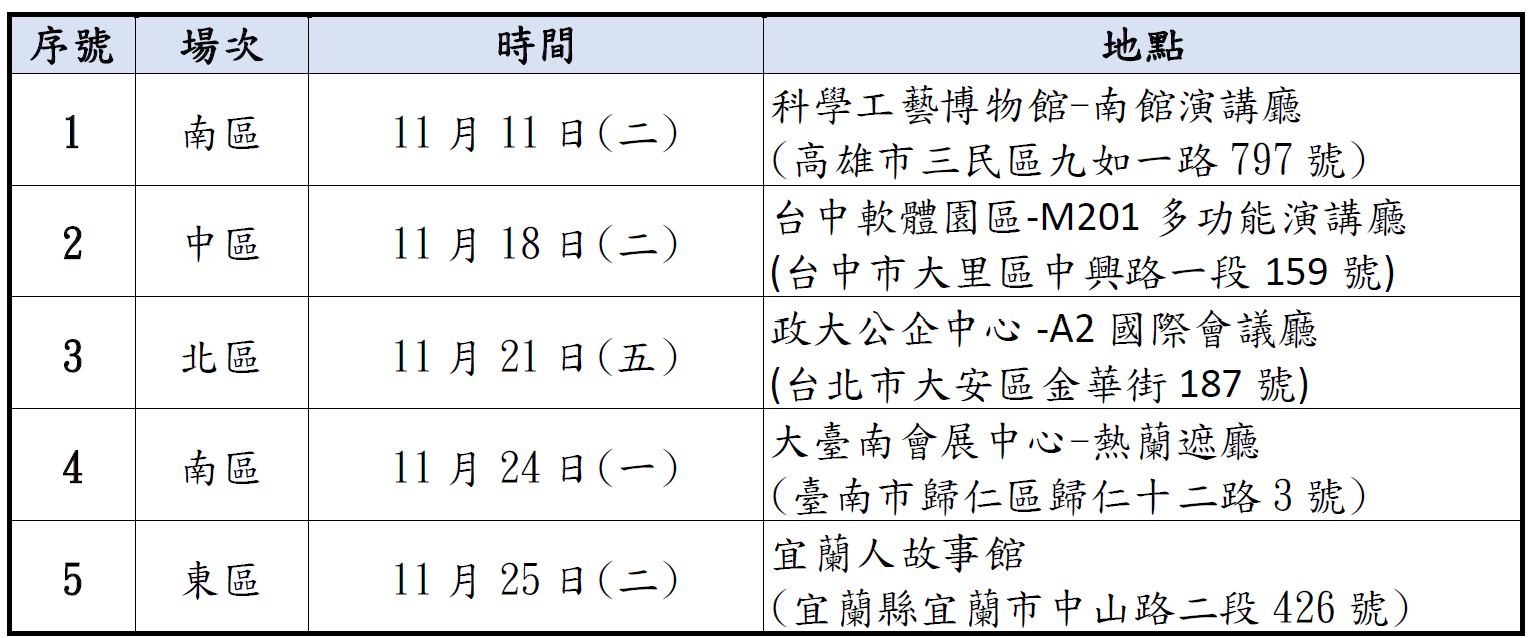 (三) 11月21日(五)北區台北場